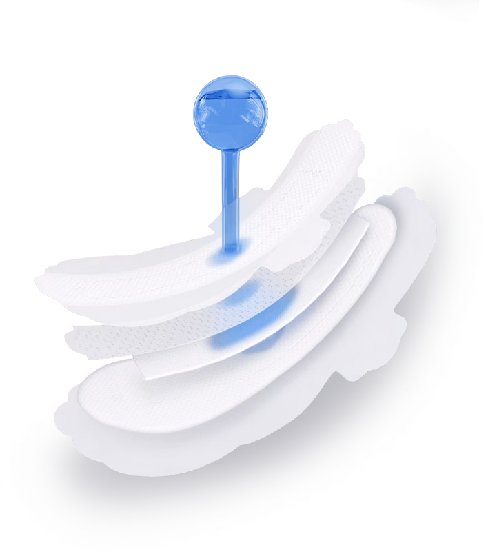 Super soft cottony surface with spiral tiny holes accelerate the liquid penetration, and special leak guard channel designed without any side leakage, breathable back sheet all make the pad super dry and always comfortable.