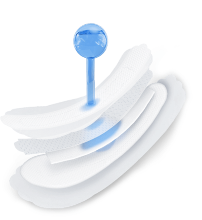 Super soft cottony surface with spiral tiny holes accelerate the liquid penetration, and special leak guard channel designed without any side leakage, all make the pad super dry and always comfortable.